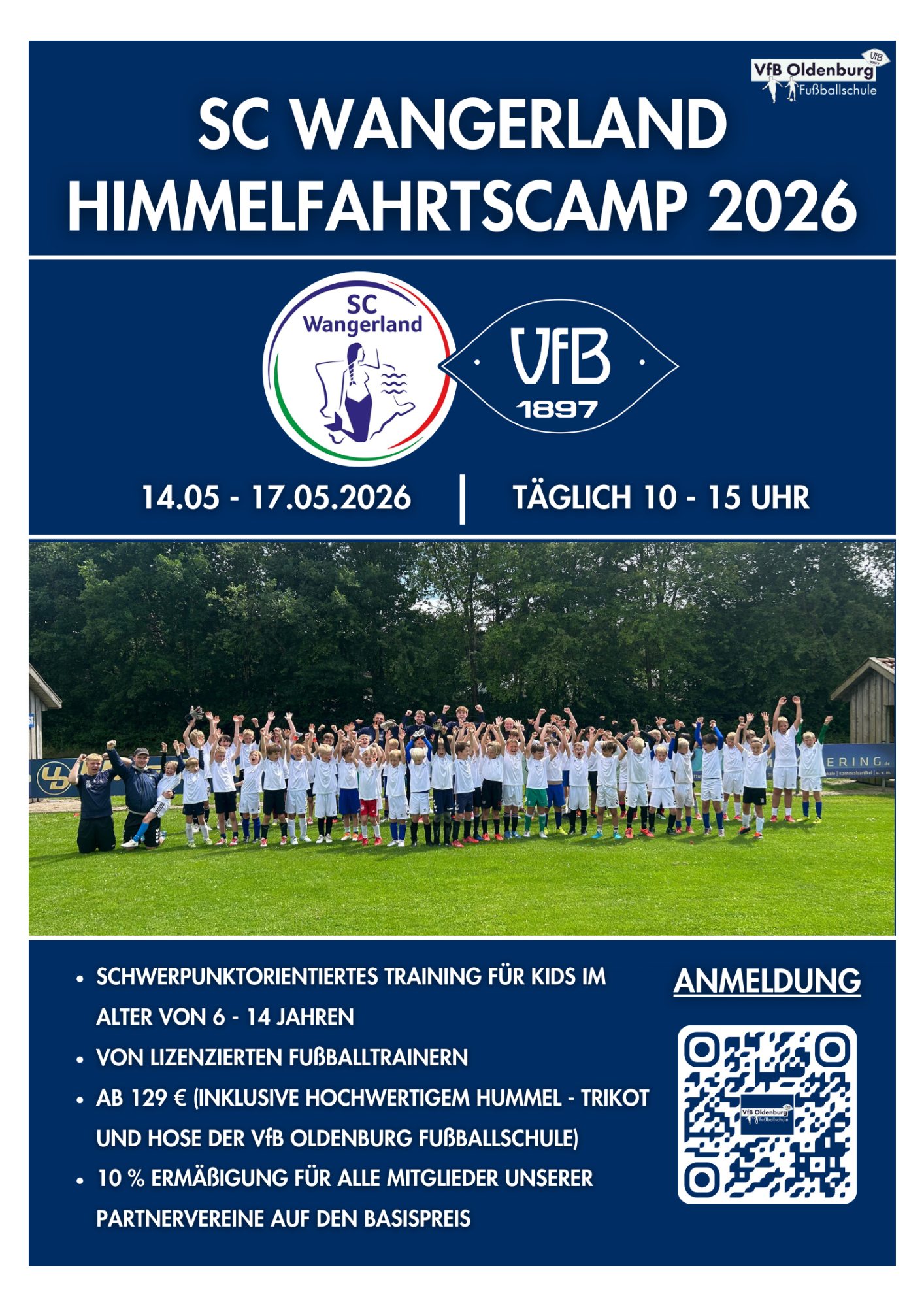 Wir freuen uns, zusammen mit dem VFB Oldenburg wieder ein Himmelfahrtscamp anbieten zu können.